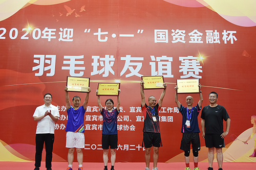 市國資委主任鄧文廣發(fā)表講話,他說,本次羽毛球友誼賽,是國資系統(tǒng)和金融系統(tǒng)全體職工精神面貌的一次集中展示,也是我們?yōu)榧涌旖ǔ扇〗?jīng)濟副中心征程中的一個精彩剪影。2019年,全市國有企業(yè)資產(chǎn)總額全省排名第三,營業(yè)收入等五項主要經(jīng)濟指標全省排名第二,并先后兩次在省上做國資國企改革交流。2020年,國有企業(yè)要繼續(xù)發(fā)揮好國資南向開放橋頭堡作用,為完成全年經(jīng)濟社會發(fā)展目標,促進宜賓加快建成全省經(jīng)濟副中心做出最積極的貢獻。