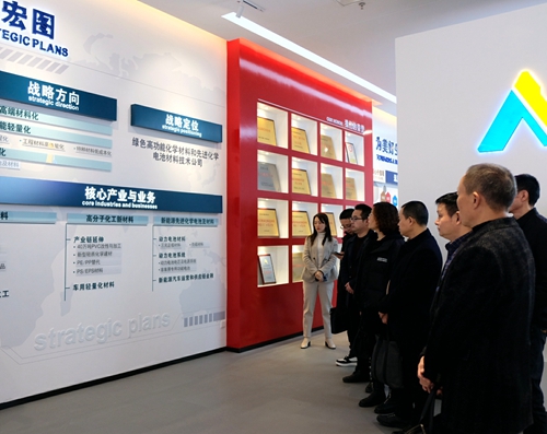 隨后,前往天億新材料公司參觀PVC-O管道和仟領(lǐng)地板展廳,深入考察產(chǎn)品性能與應(yīng)用,重點了解公司全生命周期綠色環(huán)保PVC-O+ARG建筑供水解決方案以及高科技、高功能仟領(lǐng)地板的產(chǎn)品特性,對天億新材料公司近年來獲得的綠色工廠示范企業(yè)、工業(yè)產(chǎn)品綠色設(shè)計示范單位等榮譽給予贊賞,并表示將借助宜賓市大力推動“宜賓造”產(chǎn)品市場拓展的契機,與天原集團深入開展交流合作,精準對接產(chǎn)品應(yīng)用,共同推動“宜賓造”走向千家萬戶。